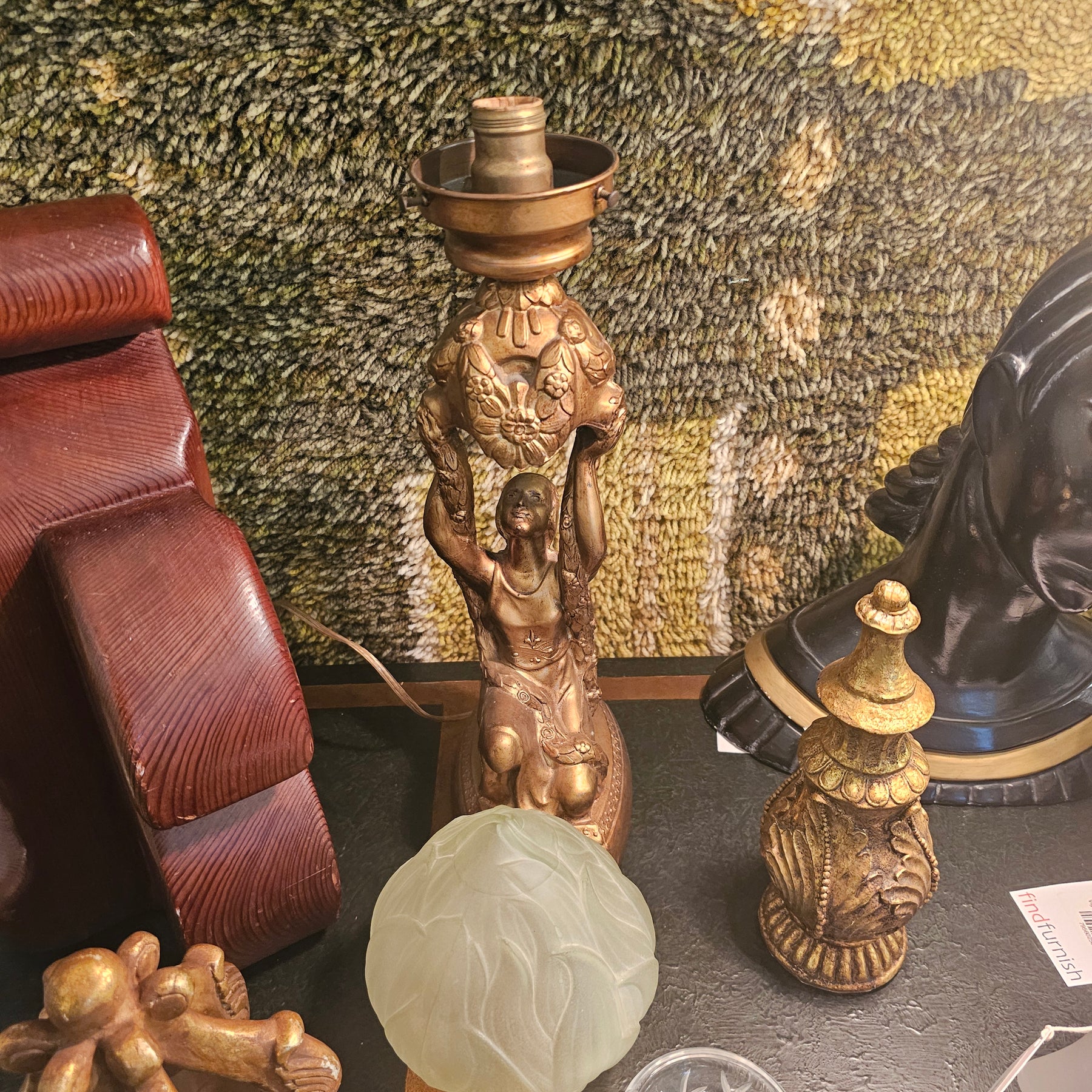 Antique Art Deco Figural Table Lamp. Features original glass globe and wiring. Works as should.