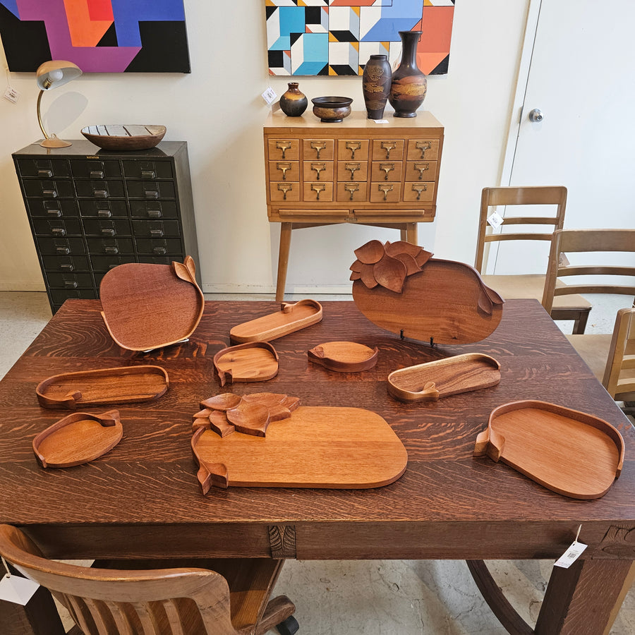 Vintage Mobilarte Hand-Carved Honduran Mahogany Trays